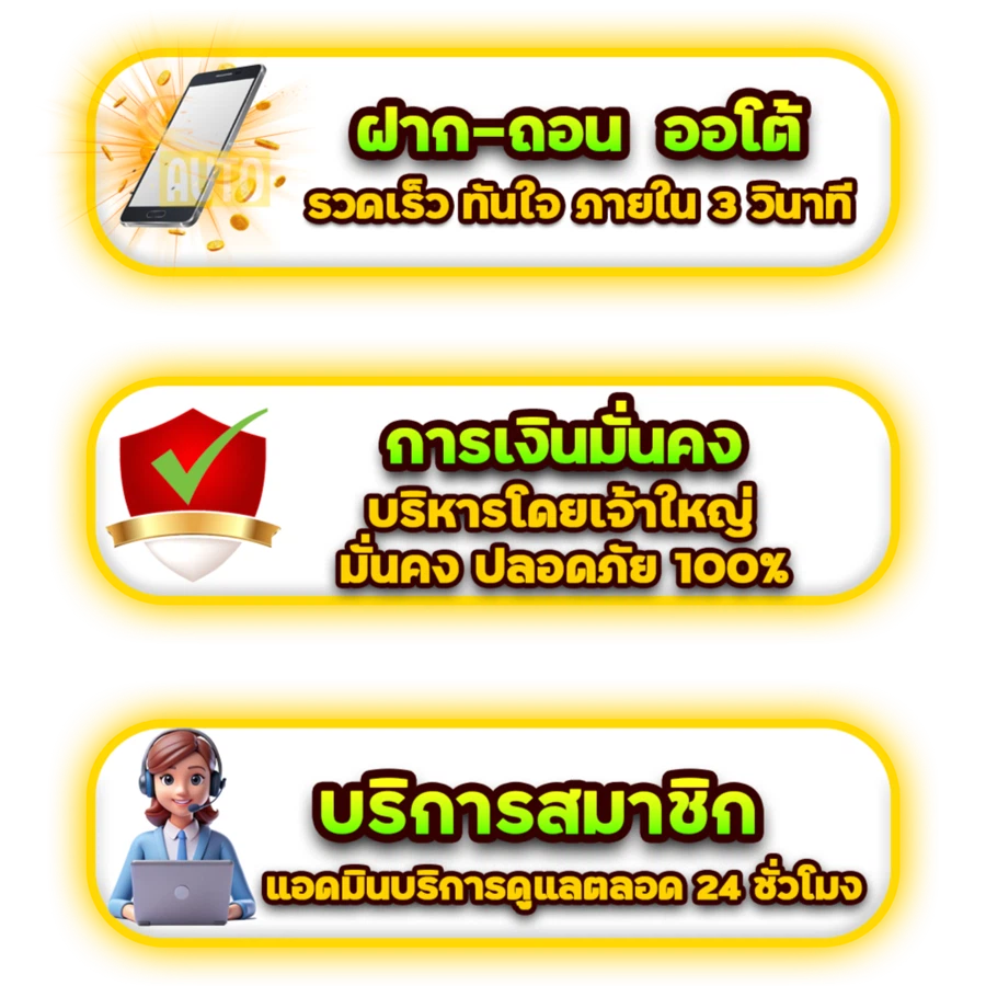 ตอบ : มีความน่าเชื่อถือสูง ใช้งานง่าย มีโปรโมชั่นหลากหลาย ฝาก-ถอนรวดเร็ว รองรับทุกอุปกรณ์ และมีทีมซัพพอร์ตตลอด 24 ชั่วโมง