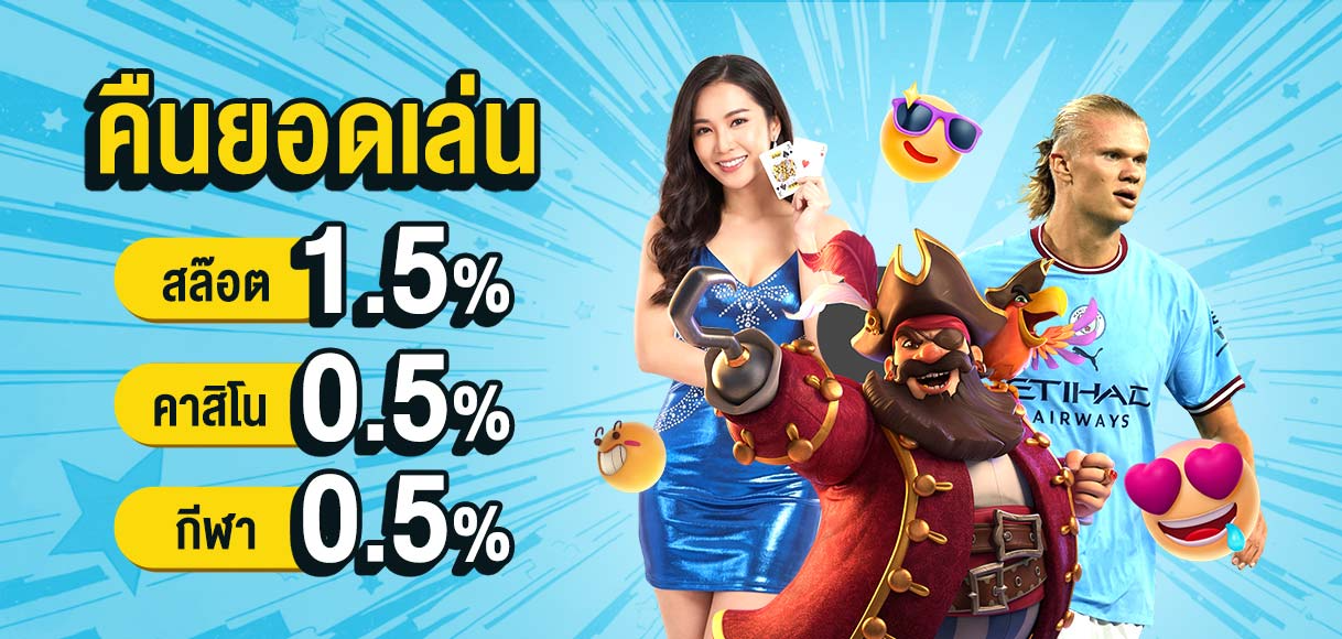 นอกจากโบนัสต้อนรับแล้ว เรายังมีโปรโมชั่นคืนยอดเสียที่จะช่วยบรรเทาความเสียหายจากการเดิมพันที่ไม่เป็นไปตามที่หวัง โดยคุณจะได้รับเงินคืนตามเปอร์เซ็นต์ที่กำหนด ซึ่งสามารถนำไปใช้เดิมพันต่อได้ทันที ไม่ต้องทำเทิร์นโอเวอร์ให้ยุ่งยาก